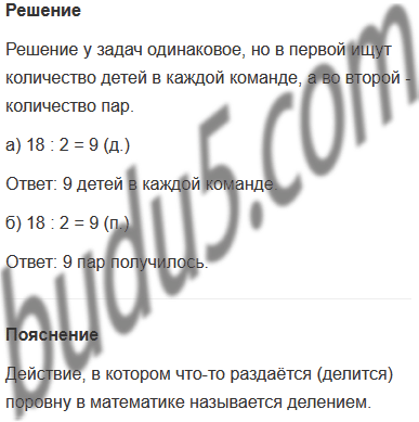 а) 18 детей разделились поровну на 2 команды. Сколько детей в каждой команде?