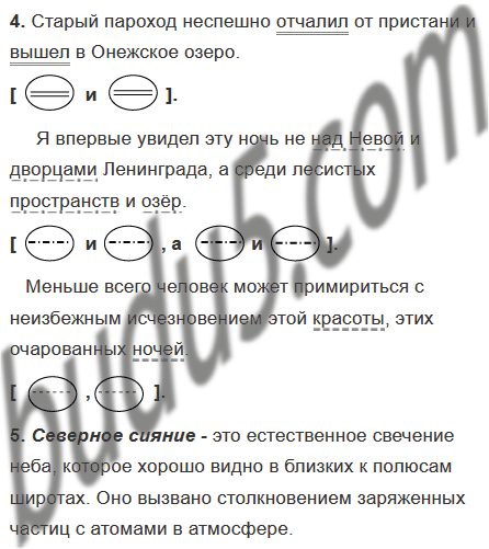 Старый пароход (не)спешно отчал..л от пристан.. и вышел в (О, о)нежское озеро. Белая ночь царстве(н, нн)о прост..ралась (во)круг. Я (в)первые увидел эту ночь не над Невой и дворцами Ленинграда а среди лесистых пространств и озёр.4 Волны от парохода бе(з, с)шумно2 уб..гали (в)даль покач..впя куски сосновой коры. На б..регу, должно быть в каком(нибудь) древнем погосте, сторож а(к, кк)уратно пробил на колокольне часы — две(н, нн)адцать ударов. Этот звон дол..тел до нас м..новал пароход и торжестве(н, нн)о уплыл по водной глади в прозрачный сумрак где висела луна.