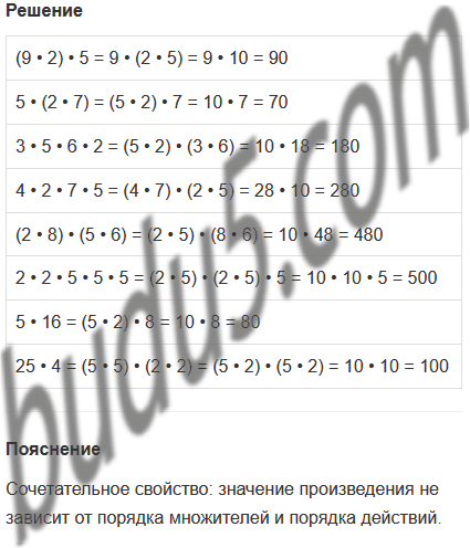 | а) (9 • 2) • (7 • 5) = (2 • 5) • (9 • 7) |