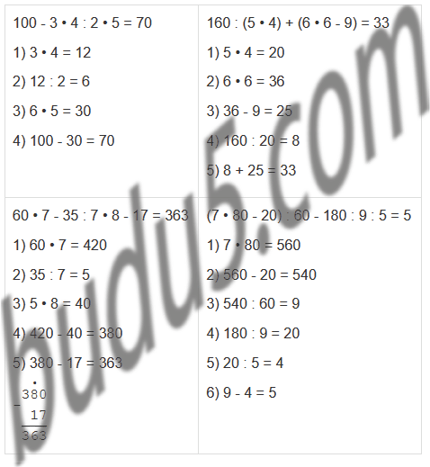 | 100 - 3 • 4 : 2 • 5 | 160 : (5 • 4) + (6 • 6 - 9) |