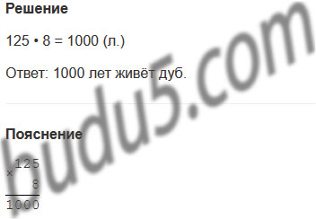 Задание № 6. Продолжительность жизни берёзы примерно 125 лет, а дуба - в 8 раз больше. Сколько лет живёт дуб?