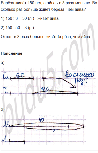 б) Медведь живёт в среднем 40 лет, а лисица - в 5 раз меньше. На сколько больше лисицы живёт медведь?