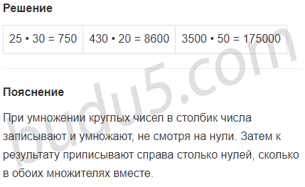 Задание № 4. Объясни, как выполнено умножение круглых чисел в столбик.