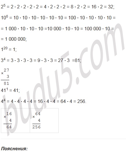 Найдите значения степеней: 25; 106; 120; 34; 411; 44.
