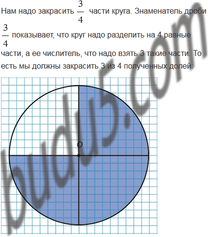 Начертите круг с центром О и радиусом 4,5 см. Разделите круг на четыре доли и закрасьте круга.