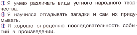 ♦ Записываем, с какими произведениями устного народного творчества мы познакомились в этом разделе.