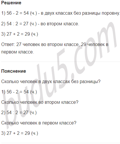 Задание № 2. В двух классах 56 человек, причем в первом классе на 2 человека больше, чем во втором. Сколько человек в каждом классе?