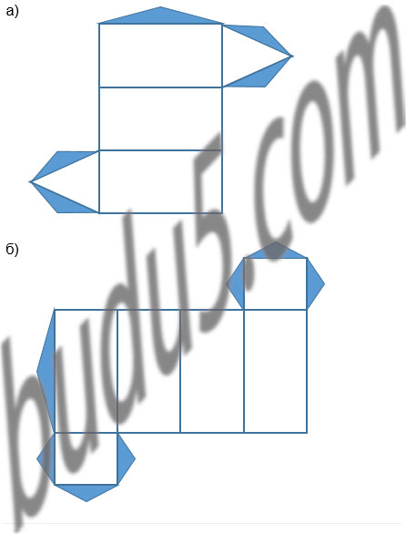 Вырежьте из плотной бумаги фигуры, изображенные на рисунке 31, и склейте фигуры, изображенные на рисунке 32. Эти фигуры называют призмами. У прямой прямой призмы боковые грани - прямоугольники, а верхнее и нижнее основания - равные многоугольники. На рисунке 32,