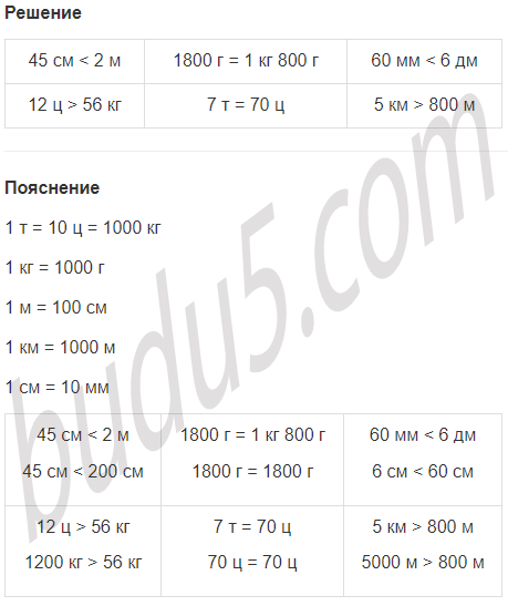 45 см 2 м | 1800 г 1 кг 800 г | 60 мм 6 дм |