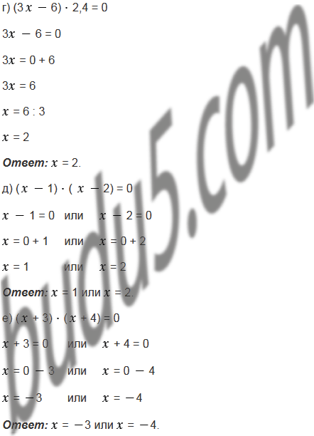 Решите уравнение, использовав свойство произведения, равного нулю: