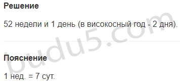 Задание № 5. Сколько полных недель в обычном году? В високосном году? Сколько дней при этом остаётся? (Под полной неделей здесь понимаются любые 7 дней, идущие подряд).
