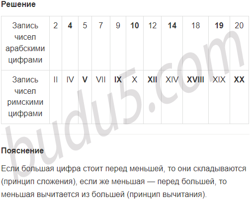 | Запись чисел римскими цифрами | II | IV | VII | X | XIV | XIX |