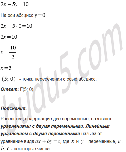 Каковы координаты точки пересечения графика уравнения с осью абсцисс?