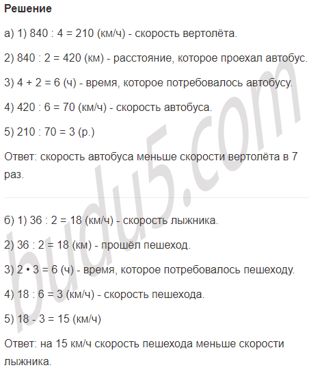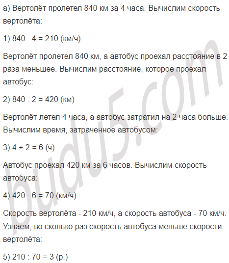 а) Вертолёт пролетел 830 км за 4 часа, а автобус проехал расстояние в 2 раза меньшее, затратив на 2 часа больше. Во сколько раз скорость автобуса меньше скорости вертолёта?