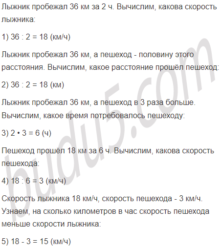 б) Лыжник пробежал 36 км за 2 ч, а пешеход прошёл половину этого расстояния за время в 3 раза большее. На сколько километров в час скорость пешехода меньше скорости лыжника?