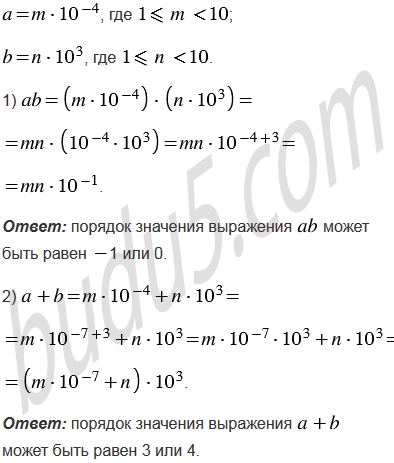 Порядок числа равен 4, а порядок числа равен 3. Каким может быть порядок значения выражения: