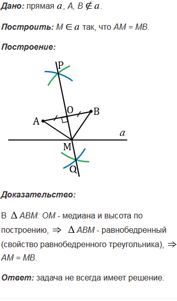 постройте точку, равноудаленную от точек А и В. Всегда ли задача имеет решение?