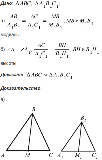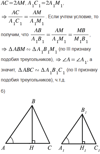 , где ВМ и В1М1 - медианы треугольников; б)
