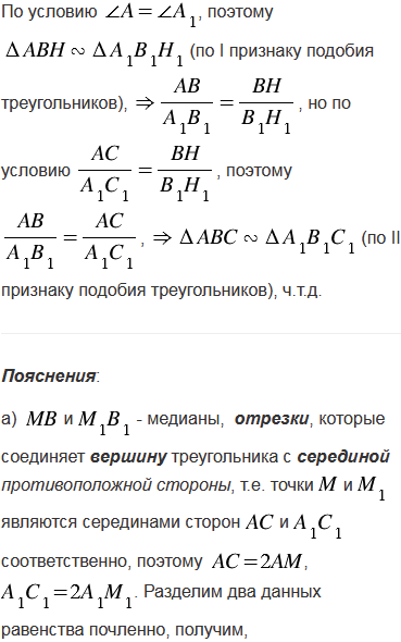, где ВН и В1Н1 - высоты треугольников АВС и А1В1С1.
