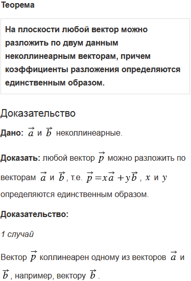 Сформулируйте и докажите теорему о разложении вектора по двум неколлинеарным векторам.