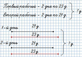 4. Один рабочий изготавливал за день 23 детали, а другой — 21 деталь. Сколько деталей изготовят оба рабочих за 2 дня?