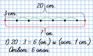 2) 20 : 3 = 6 (ок.) и (ост. 2 ст.)
