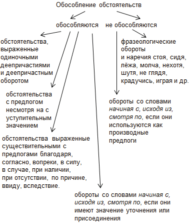 С опорой на схему кратко изложите содержание текста об обособлении обстоятельств однокласснику. Выясните, всё ли понятно слушающему.