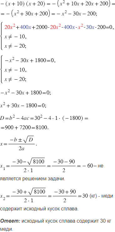 Кусок сплава меди и цинка, содержавший 10 кг цинка, сплавили с 10 кг меди. Полученный сплав содержит на 5% меди больше, чем исходный. Сколько килограммов меди содержит исходный кусок сплава?