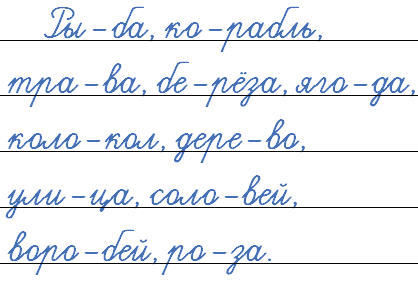 Образец. Ры-ба, ко-рабль, ... .