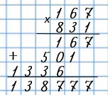 Рассмотри, как умножили 769 на двузначное число и как умножили его на трёхзначное число.