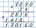 В десятках получилось 8 после умножения десятков и после того, как к ним прибавили 6 дес., которые получились при умножении единиц. Значит, после умножения десятков в единицах должно получится 2, так как 8 - 6 = 2. Значит, умножали число 6. 6 • 7 = 42.