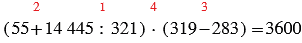 Красные числа, стоящие сверху над действиями, показывают в каком порядке нужно выполнять действия.