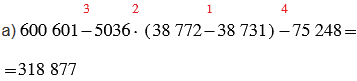 а) 600 601 - 5036 • (38 772 - 38 731) - 75 248;