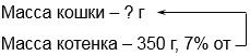 Масса котенка 350 г и составляет 7% массы кошки, значит, 1% от массы кошки составляет: