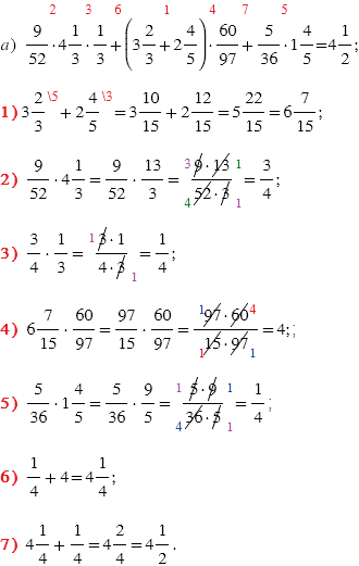 Красные числа, стоящие сверху над действиями, показывают в каком порядке нужно выполнять действия.