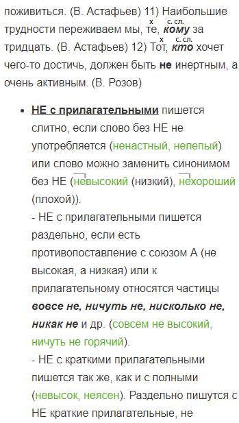 • НЕ с прилагательными пишется слитно, если слово без НЕ не употребляется (ненастный, нелепый) или слово можно заменить синонимом без НЕ (невысокий (низкий), нехороший (плохой)).