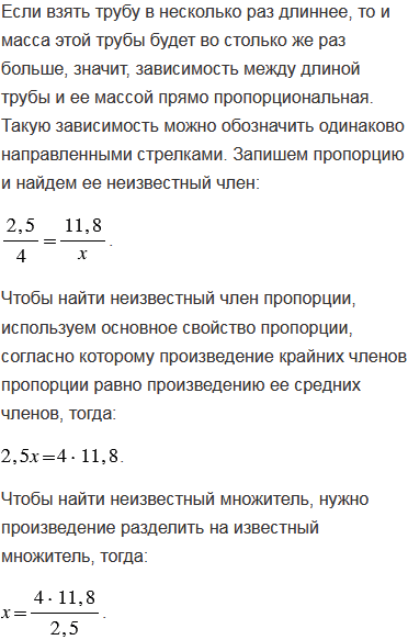 Труба длиной 2,5 м имеет массу 11,8 кг. Найдите массу такой же трубы длиной 4 м.