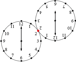 На "симметричном" циферблате в отличие от исходного, часовая и минутная стрелки поменяются местами, последовательность чисел от 1 до 12 не нарушается, но они перевернуты. Движение стрелок на "симметричных" часах совпадает с движением стрелок на исходных часах.