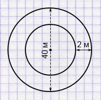 Тогда, учитывая то, что ширина дорожек 2 м, диаметр внутреннего круга (часть внутренней дорожки) будет равен: