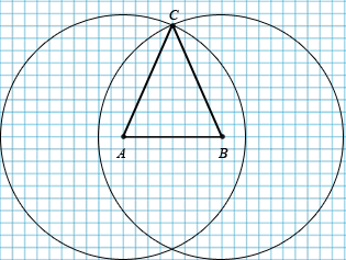 4. Обозначаем одну из точек пересечения окружностей буквой С.