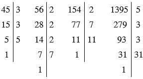 г) 1395 = 3 • 3 • 5 • 31 = 32 • 5 • 31