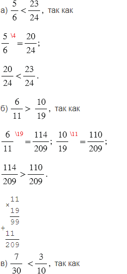Из двух дробей с одинаковыми знаменателями больше та, у которой числитель больше, и меньше та, у которой числитель меньше.