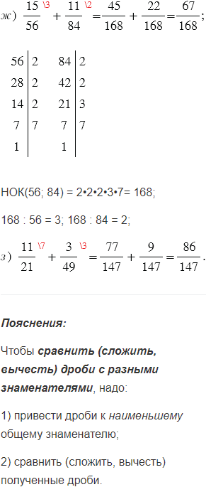 2) сравнить (сложить, вычесть) полученные дроби.
