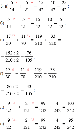 2) сравнить (сложить, вычесть) полученные дроби.