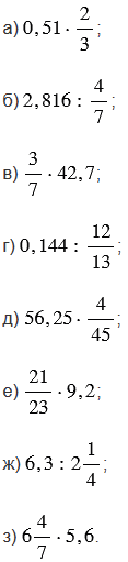 Чтобы умножить обыкновенную дробь на десятичную дробь, нужно ее числитель умножить на эту десятичную дробь, а знаменатель оставить без изменения.