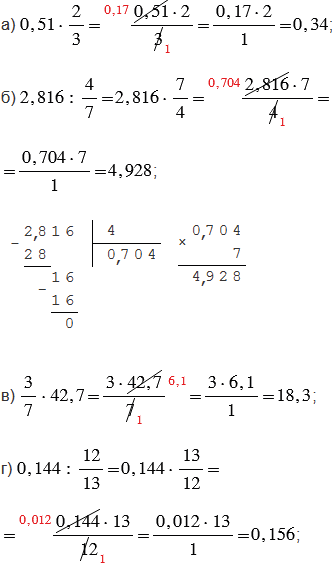 При выполнении умножения дробей, чтобы вычисления были проще, не надо перемножать сразу, лучше сделать это после сокращения. Сократить дробь - значит, разделить ее числитель и знаменатель на одно и то же число (наибольший общий делитель).