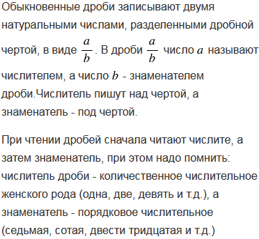 Прочитайте: . Назовите числитель и знаменатель каждой дроби.