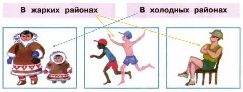 1. Укажи стрелками разного цвета, в каких районах Земли живут эти люди. Объясни, почему ты так думаешь.
