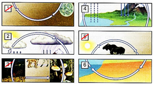 Чтобы собрать модель круговорота воды в природе, нужно взять детали – 2, 4, 6, которые показывают испарение воды с поверхности земли и водоёмов, образование облаков, выпадение осадков, обратное попадание осадков в водоёмы и на поверхность земли.