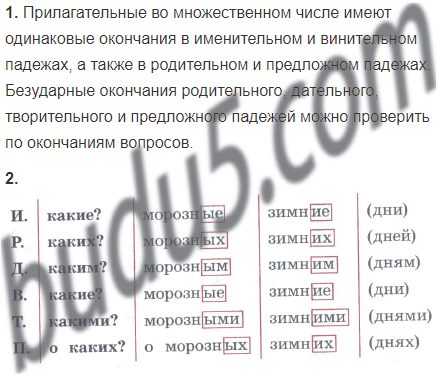 1. Сравните окончания прилагательных в разных падежах. Укажите сходство и различие. Сравните окончания прилагательных и вопросов. Какие безударные окончания прилагательных можно проверить по окончаниям вопросов?